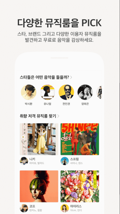 - 취향에 맞는 뮤직룸을 발견하고, 새로운 친구를 만들어보세요.