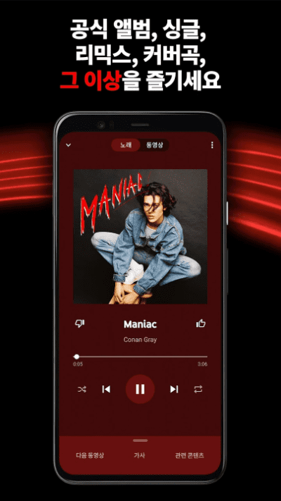 ● YouTube Music에서만 지원되는 오디오와 동영상 간 매끄러운 전환