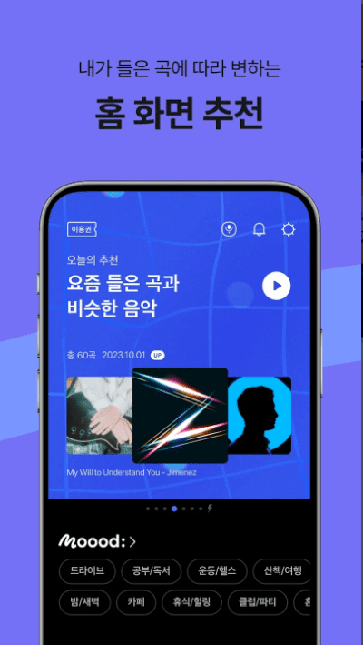 음악이 필요한 모든 순간에 어울리는 맞춤형 음악을 즐기세요