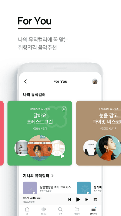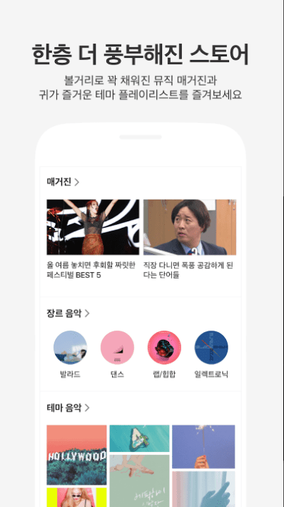 - 트렌디하고 감성적인 스테이션, 나만의 취향 저격 스테이션, 뮤직캐스트 등 다양한 스테이션을 즐겨보세요.