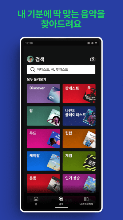 - 검색과 탐색의 통합! 장르, 태그별로 원하는 곡을 발견하는 공간.