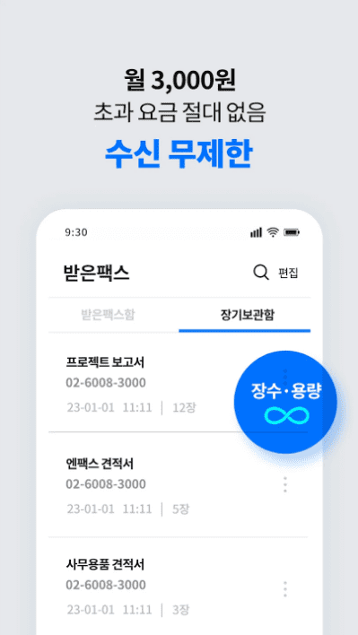 - 팩스수신 : 무제한 수신! 3,000원/월 (vat포함)