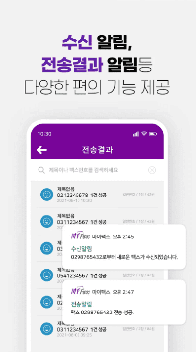 - 푸시 알림으로 팩스 수신 즉시 확인 가능