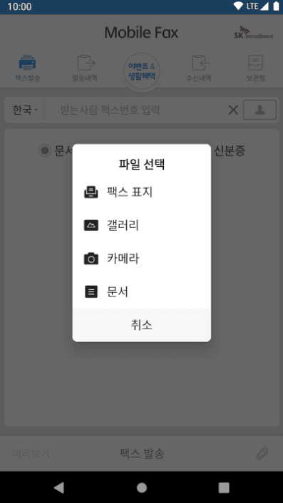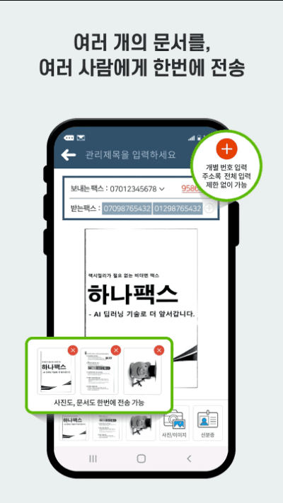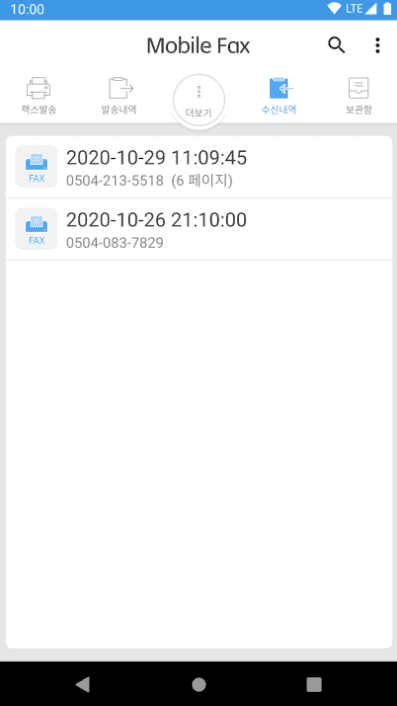 - 휴대폰 주소록의 번호로 팩스 발송 가능