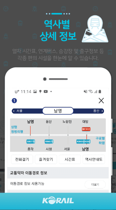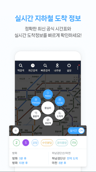 - 도착정보, 다양한 역정보, 주변 지도 기능등 다양한 상세 정보를 제공합니다.