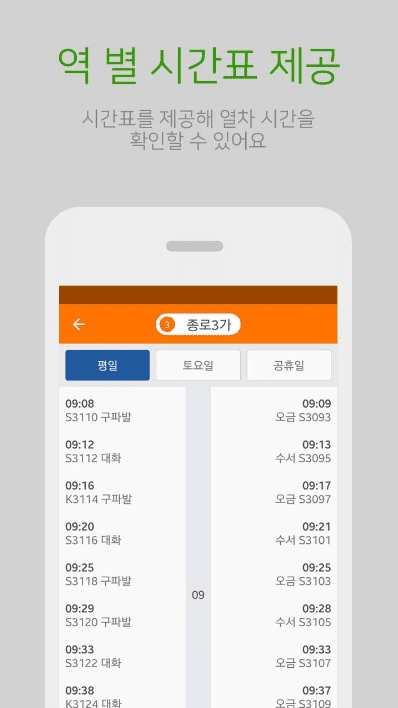 - 출퇴근시간, 평일, 토요일, 공휴일에 따라 달라지는 대중교통 지하철 시간표 완벽 지원