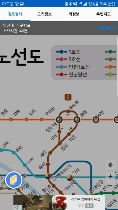 - 지명 검색으로 목적지까지 지하철 네비게이션