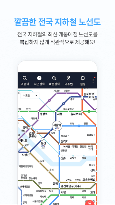 - 풀터치 기반으로 기능 조작이 가능한 전국 모든 지하철의 최신 정보를 제공합니다.