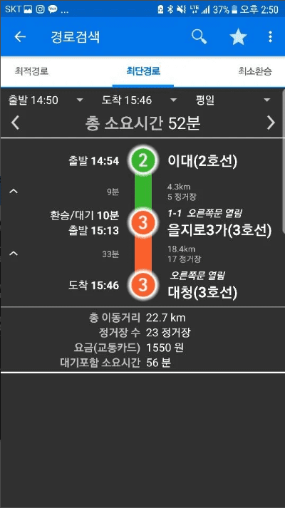 - 급행 추천으로 최단시간 경로 제안