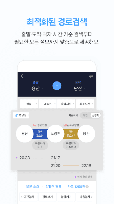 빠른환승/하차정보, 약냉방칸, 하차알람, 역주변 편의장소 및 도보길찾기 등 출발부터 도착까지 스마트한 이동에 필요한 모든 서비스를 제공합니다.