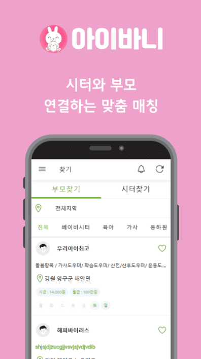 손쉽고 간편한 아이바니에서 베이비시터 빠르게 찾을 수 있습니다.