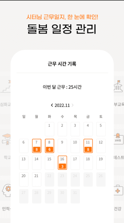 - 돌봄 관리 : 시터님 근무 일지 캘린더로 확인