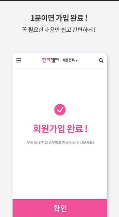 - 단디헬퍼에서는 회원가입부터 정보 등록까지 무료로 이용하실 수 있습니다.